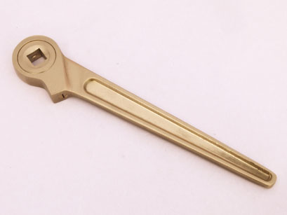 防爆棘轮扳手是一种用于手动松紧螺丝的防爆工具,种类有单头和双头等多种型号规格,是由不同规格尺寸的主梅花套和从梅花套两种梅花套通过铰接键的阴键和阳键咬合的方式连接而成的。防爆棘轮扳手是由铜合金炼制而成,由于铜合金的特殊物理性能(即不含碳和导热性能良好),使得棘轮扳手和机械部件摩擦或撞击时产生的热量被迅速吸收及传导开来,而且铜本身相对其他有色金属来说比较软,摩擦和撞击时有很好的退让性,不易产生微小金属颗粒,于是我们几乎看不到火花,因此防爆棘轮扳手又称为无火花棘轮扳手,防爆棘轮扳手由于一个梅花套具有两个规格的梅花形通孔,使它可以用于两种规格螺丝的松紧,从而扩大了使用范围,节省了原材料和工时费用。活动扳柄可以及时方便地调整扳手使用的角度。这种扳手可以用于螺丝的松紧操作,具有适用性强,操作方便和价格低廉等优点。